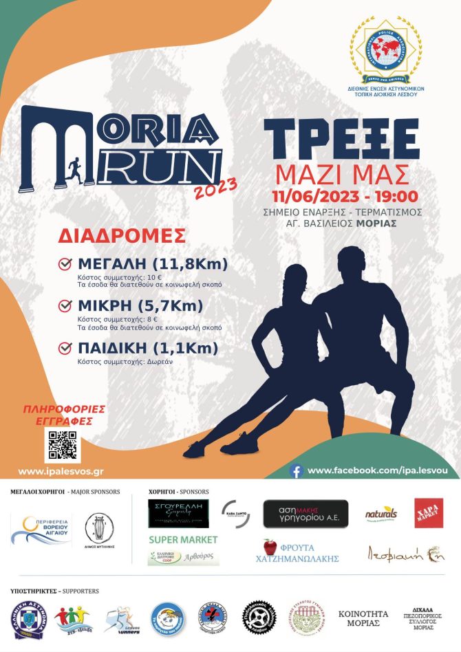 https://www.ipalesvos.gr/post/moria-run-2023?fbclid=IwAR36nBbzC26L3x51y1_cFA97aX7HZ2rn3tmQ6Kmy4C6uSlejZUFiSpvjCso Με επιτυχία πραγματοποιήθηκε από την Διεθνή Ένωση Αστυνομικών- Τοπική Διοίκηση Λέσβου ( IPA Lesvos) την Κυριακή 11 Ιουνίου ο αγώνας δρόμου Moria Run 2023. Ο φετινός αγώνας είχε μεγάλη συμμετοχή και ήταν αφιερωμένος στη μνήμη του προέδρου Μόριας Γιάννη Μαστρογιάννη. Τα έσοδα από τις συμμετοχές θα διατεθούν για την έκδοση βιβλίου…